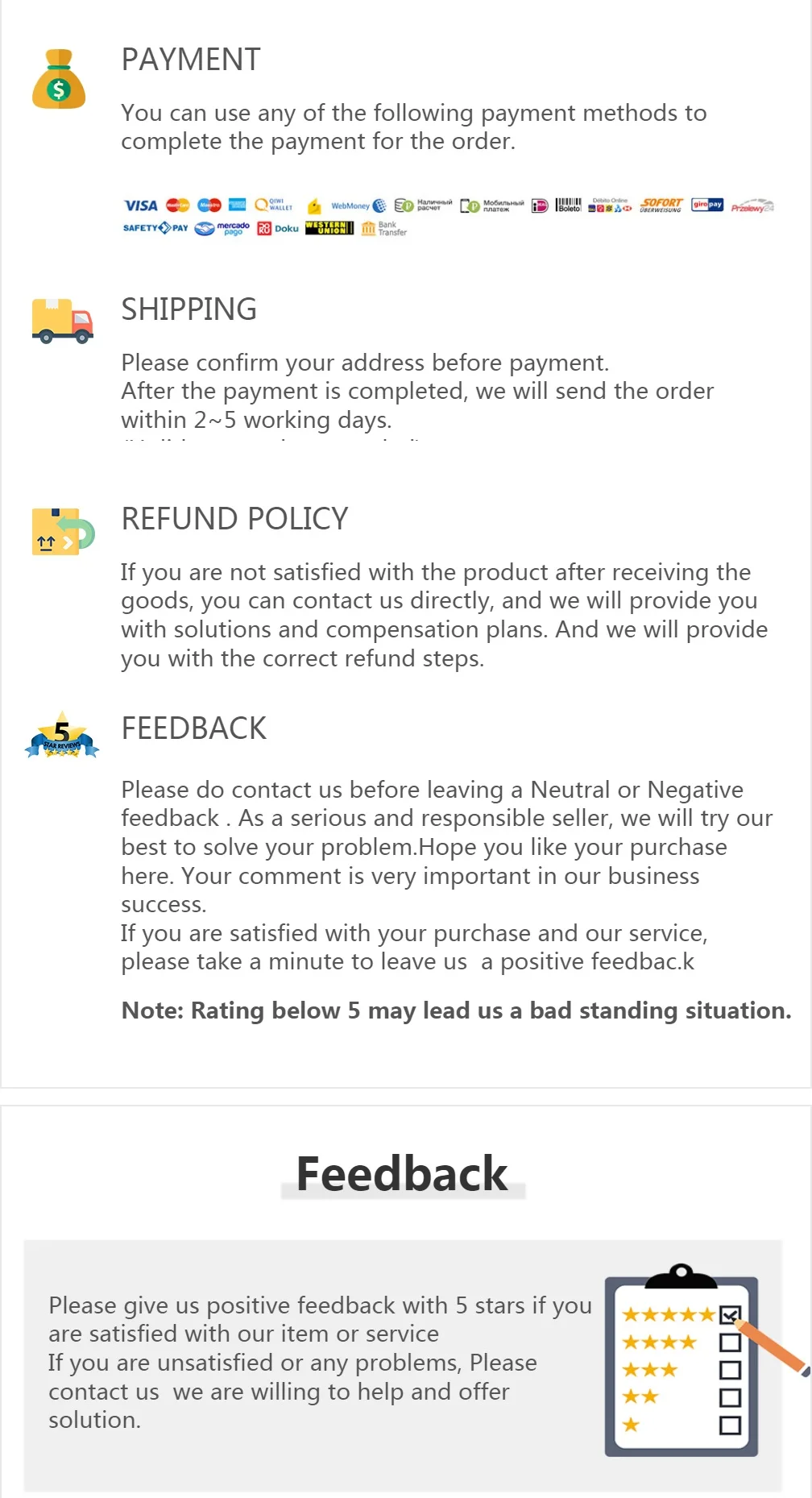 • If you do not want the product you’ve received you may request a refund but you must return the item at your expense and the item must be unused.