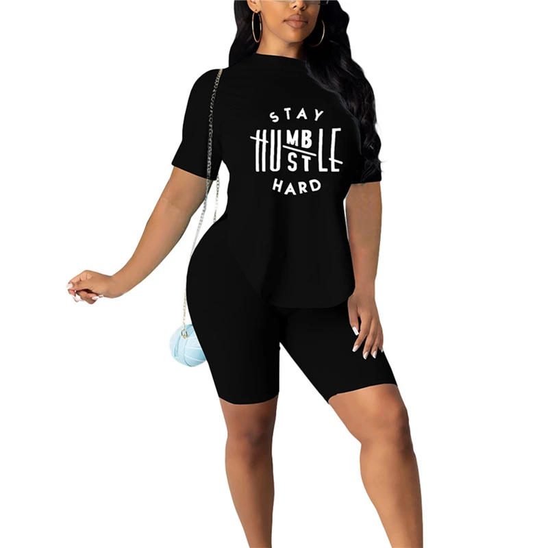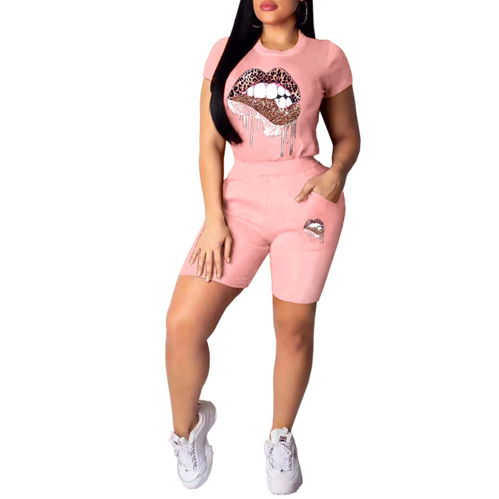 Lips Printed T-shirt Top Elastic Waist Shorts Set