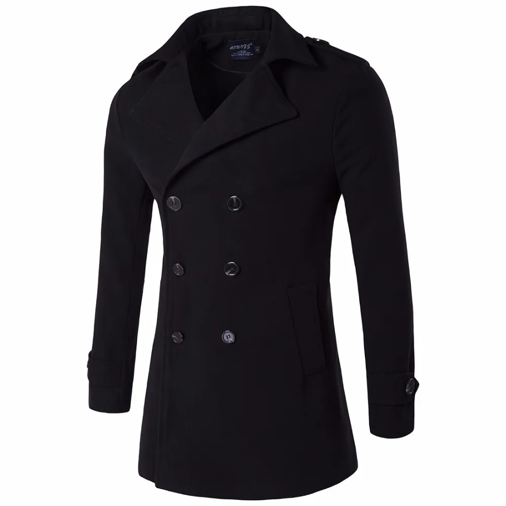Men Double Breasted Military Style Peacoat up to Plus Size 4XL