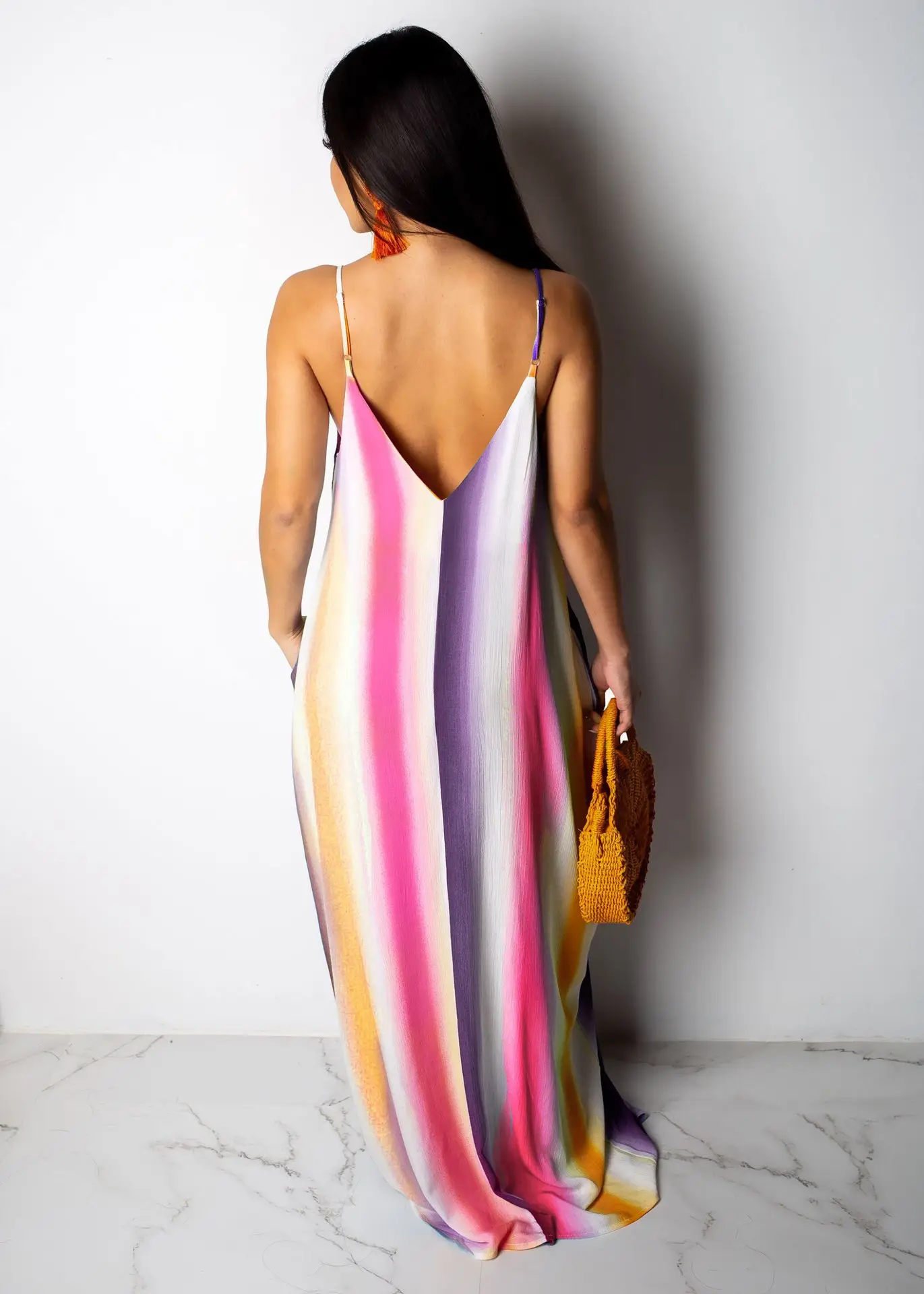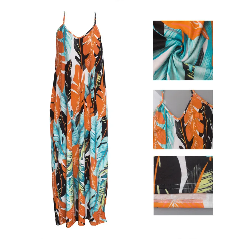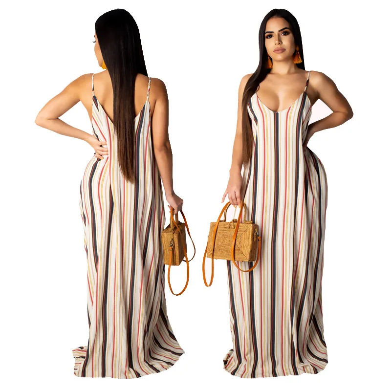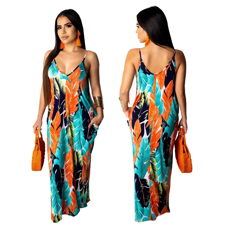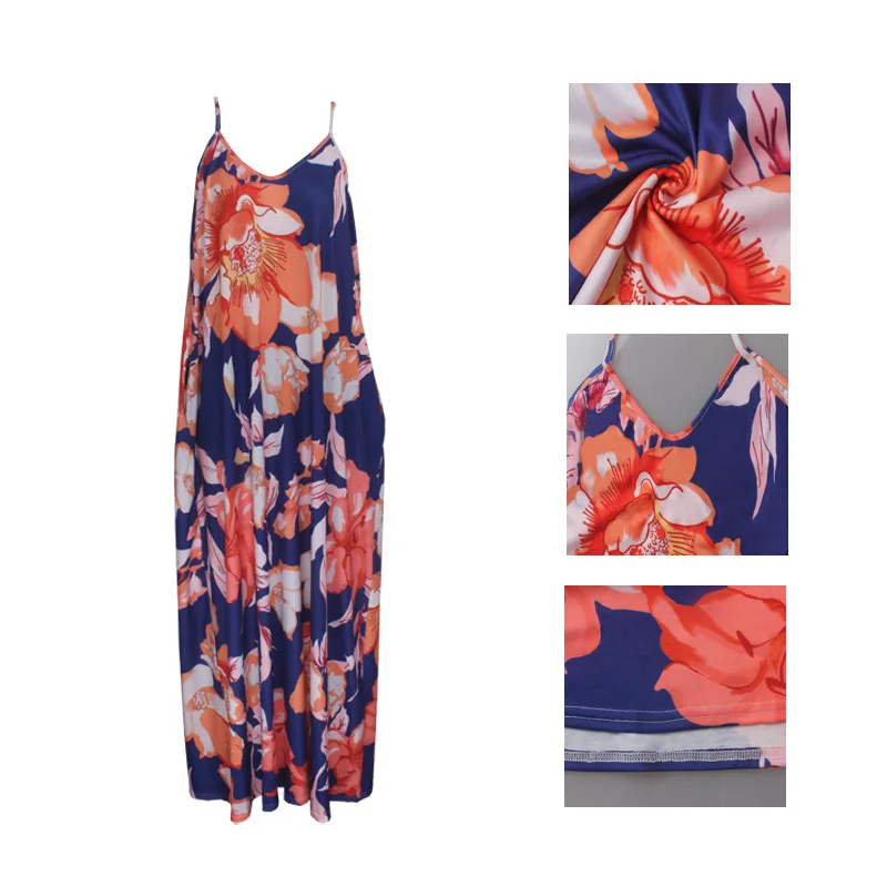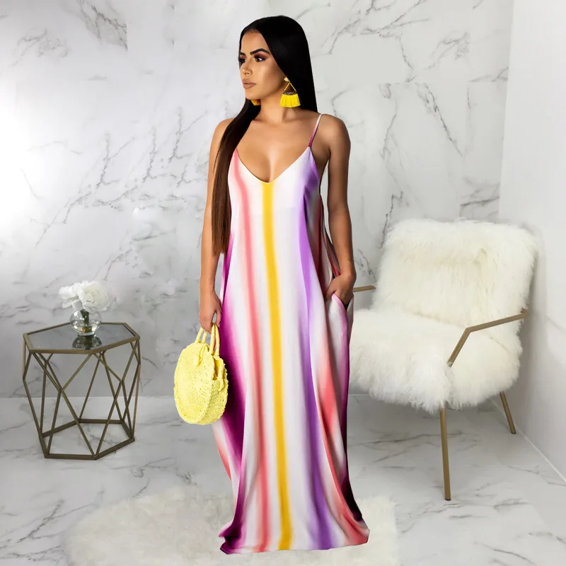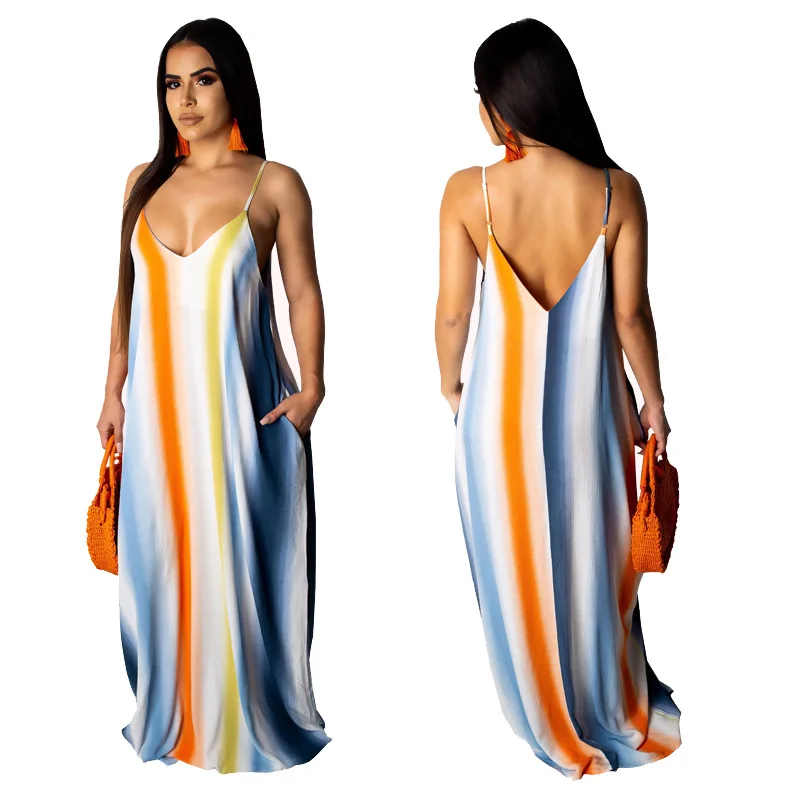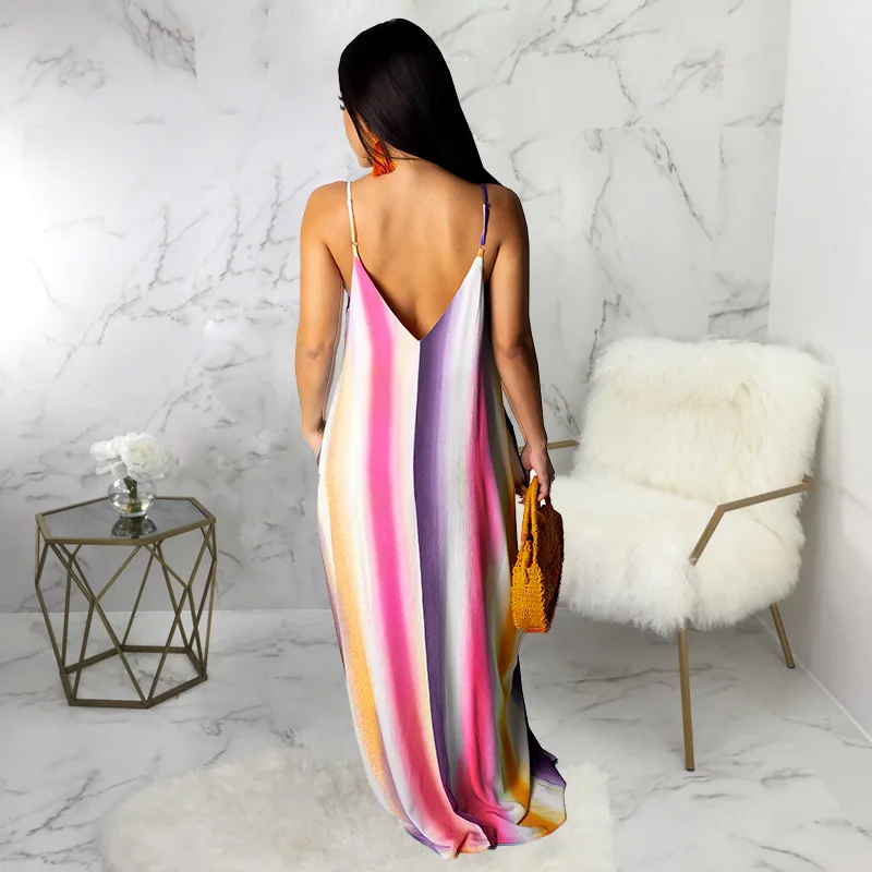 V Neck Spaghetti Strap Long Loose Maxi Dress